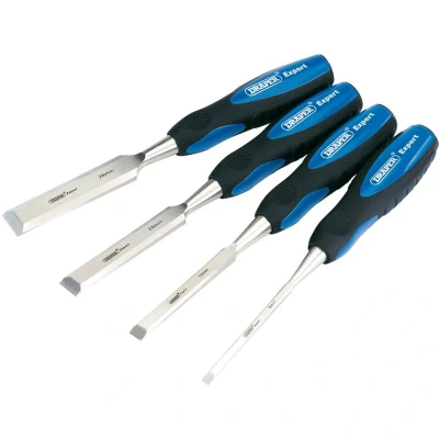 General description This set of four woodworking chisels from Draper Tools is a versatile and essential tool for woodworking projects. The chisels feature full-length beveled edges and are made from hardened, tempered, and finely ground chrome-vanadium steel, coated with a transparent lacquer for corrosion resistance. Each chisel comes with a protective blade guard, ensuring safety during storage and handling. The ergonomic polypropylene handles with soft grip and impact-resistant caps provide comfort and durability for precise work. Technical specifications Material: Chrome-vanadium steel Blade length: Full-length beveled edges Steel coating: Transparent lacquer for corrosion resistance Includes four chisels with widths: 6 mm, 12 mm, 20 mm, and 26 mm Handle material: Polypropylene with soft grip and impact-resistant caps Compatibility and accessories Includes blade guards for each chisel to protect the blades and ensure safety Installation No installation required; ready to use out