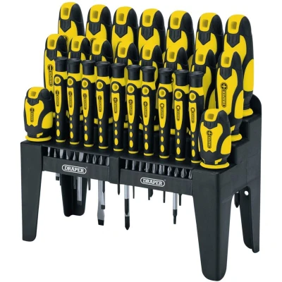 Electrical WorldA limited-edition comprehensive set of screwdrivers and bits supplied with a convenient storage stand. Made from chrome vanadium steel, correctly hardened and tempered. The screwdriver blades have a satin chrome plating for corrosion protection and blackened tips. The convenient storage stand helps organise the tools.