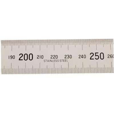 Electrical WorldExpert Quality, precision rules manufactured from hardened stainless steel matt chrome plated. The clear black graduations of 0.5mm, mm, 0.5cm, cm and 1/64", 1/50", 1/32", 1/20", 1/16", 1/10", 1/2", and inches on the reverse are permanently etched for long service life. Packed into vinyl wallets. Display packed.