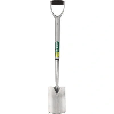 General description This stainless steel border spade features a soft handgrip and a Y-dee handle attached to a steel core shaft coated with plastic for comfort and durability. It is designed for precise digging and edging tasks in gardening and landscaping. The blade and socket are fully hardened, tempered, and polished for strength and longevity. The spade is sold separately, allowing for versatile use with compatible handles. Technical specifications Material: Stainless steel blade and socket Handle: Y-dee handle with soft grip Shaft: Steel core with plastic coating Blade type: Border spade Product type: Hand tool for gardening Compatibility and accessories Compatible with standard handles designed for border spades Sold separately from handles or other attachments Installation Attach the spade blade to a compatible handle by fitting the socket securely into the handle's fitting Ensure the connection is tight for safe and effective use Usage Ideal for edging flower beds, borders,