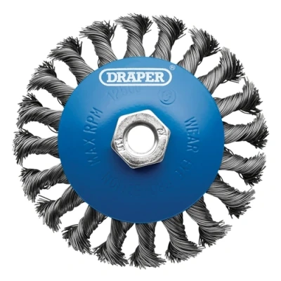 Draper Steel Bevelled Twist Knot Wire Wheel Brush, 115mm, M14