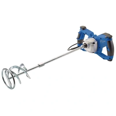 General description This dual-handle corded paddle mixer is ideal for mixing low-density materials such as paint, varnish, bitumen, and joint-sealing compounds up to 80 liters. It features a robust construction with a high-quality gearbox, ensuring durability and reliable performance. The mixer is equipped with a 120mm diameter swirl paddle that allows for quick and consistent mixing. Its ergonomic design includes soft grip handles on each side for comfortable use during prolonged mixing tasks. The mixer offers variable speed control up to 680rpm with a soft start function, providing enhanced control and safety. A safety switch with a lock-off button ensures secure operation. Technical specifications Power: 1200W Voltage: 230V No load speed: 0-680rpm Paddle diameter: 120mm Maximum volume: 80L Spindle thread: M14 Weight: 4.3kg Compatibility and accessories Includes a 2-part mixing paddle Supplied with two spanners for paddle removal and installation Installation Attach the paddle to