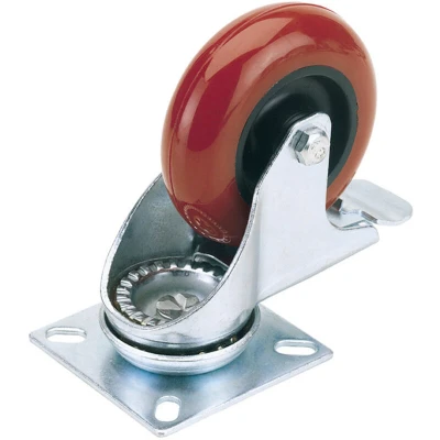 Electrical WorldSwivel plate fixing with brake. High tear strength, up to twice the service life of rubber wheels with good load carrying capacity. Sold in polybags with label.