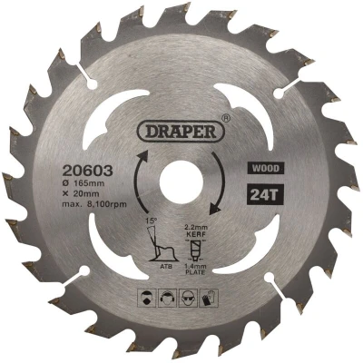 Draper TCT Circular Saw Blade for Wood, 165 x 20mm, 24T