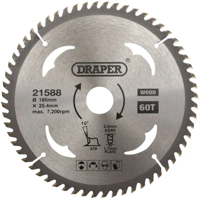 Draper TCT Circular Saw Blade for Wood, 185 x 25.4mm, 60T