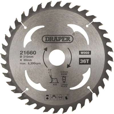 Draper TCT Circular Saw Blade for Wood, 210 x 30mm, 36T