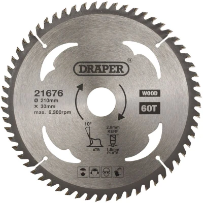 Draper TCT Circular Saw Blade for Wood, 210 x 30mm, 60T