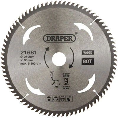 Draper TCT Circular Saw Blade for Wood, 250 x 30mm, 80T