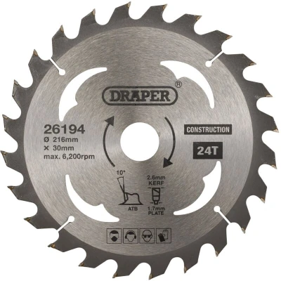 Draper TCT Construction Circular Saw Blade, 216 x 30mm, 24T