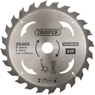 Draper TCT Construction Circular Saw Blade, 250 x 30mm, 24T