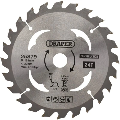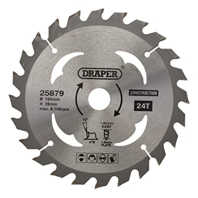 Draper TCT Cordless Construction Circular Saw Blade for Wood & Composites, 165 x 20mm, 24T