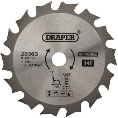 Draper TCT Multi Purpose Circular Saw Blade, 165 x 20mm, 14T