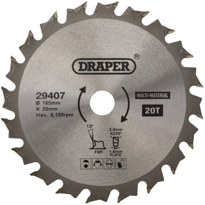 Draper TCT Multi Purpose Circular Saw Blade, 165 x 20mm, 20T