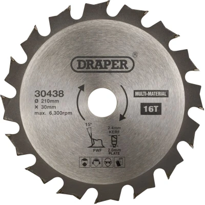 Draper TCT Multi Purpose Circular Saw Blade, 210 x 30mm, 16T