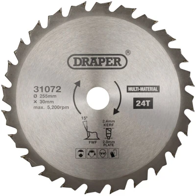 Draper TCT Multi Purpose Circular Saw Blade, 255 x 30mm, 24T