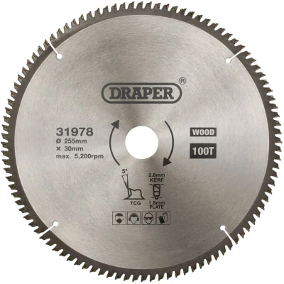 Draper TCT Triple Chip Grind Circular Saw Blade, 255 x 30mm, 100T