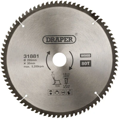Draper TCT Triple Chip Grind Circular Saw Blade, 255 x 30mm, 80T