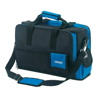 General description This professional tool case is designed for organizing and transporting a variety of tools and a laptop. Made from water-repellent polyester, it offers durability and protection for your equipment. The bag features multiple compartments and pockets for efficient storage and easy access. Technical specifications Material: Water-repellent polyester Dimensions: 43.5 x 15.5 x 30.2 cm (L x W x H) Color: Black and blue Fabric composition: 100% polyester Compatibility and accessories Suitable for carrying tools and laptops Includes external and internal pockets Elasticated tool loops Reinforced base for added durability Installation Easy to carry with a handle Adjustable, detachable shoulder strap Usage Ideal for professionals needing organized storage for tools and laptops Features multiple compartments for tools, accessories, and electronic devices Other information Packed in polythene bag with display card This is a Draper product.