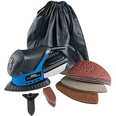 Electrical WorldInterchangeable base and finger plates, Hook and loop base pads, Dust collection box, Supplied with 24 sanding sheets and 2M cable with BS plug.