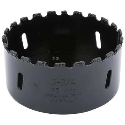 General description Expert Quality tungsten carbide grit hole saws are ideal for electricians, plumbers, and general use. They are perfect for drilling through masonry, tiles, aerated blocks, and more. Manufactured from high-quality steel, these hole saws feature a welded tungsten carbide grit rim for enhanced durability and performance. Technical specifications Diameter: 95mm Maximum cutting depth: 35mm