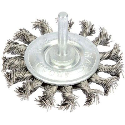General description This heavy-duty wire wheel is designed for aggressive cleaning, deburring, rust removal, and preparing welding seams. It is suitable for use on ferrous metals and offers high durability and performance. Technical specifications Diameter: 75mm Material: Hardened steel wire Shank diameter: 6mm Compatibility and accessories Compatible with most drill drivers and drills with a 13mm chuck Fitted with a non-slip 6.35mm hex shank for secure attachment Installation Insert the shank into the drill chuck and tighten securely Ensure the wheel is properly attached before use Usage Use in a controlled manner to remove rust, paint, or debris from metal surfaces Apply moderate pressure for effective material removal Wear appropriate safety gear, including gloves and eye protection
