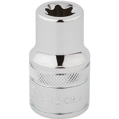 General description This 1/2" square drive socket features Draper TX-STAR® technology, designed for use with Torx fixing systems. It is made from high-quality chrome vanadium steel, ensuring durability and strength. The socket has a hardened, tempered construction with a polished finish for enhanced performance and longevity. Technical specifications Size: 1/2 inch square drive Type: TX-STAR® socket Material: Chrome vanadium steel Finish: Polished Manufactured to high standards for durability and precision Compatibility and accessories Compatible with TX-STAR® Torx fixing systems Suitable for use with standard 1/2" drive tools Installation Attach the socket securely onto a compatible 1/2" drive ratchet or wrench Ensure the socket is properly engaged with the Torx fastener before applying torque Usage Use with compatible Torx fasteners for assembly or maintenance tasks Apply steady torque to avoid damaging the fastener or socket
