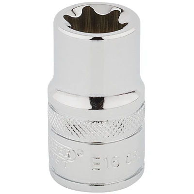General description This is a 1/2 inch square drive TX-STAR socket designed for professional use. Made from high-quality chrome vanadium steel, it is hardened, tempered, and finished with a polished surface for durability and ease of use. Compatible with TX-STAR® Torx fixing systems, it ensures a secure fit and reliable performance during assembly or maintenance tasks. Technical specifications Drive size: 1/2 inch Socket type: TX-STAR® (Torx) Size: E16 Material: Chrome vanadium steel Finish: Polished Compatibility and accessories Compatible with TX-STAR® Torx fixing systems Suitable for use with standard 1/2 inch drive tools Installation Attach the socket to a compatible 1/2 inch drive ratchet or wrench Ensure the socket is properly seated on the Torx screw head before applying torque Usage Use for tightening or loosening TX-STAR® (Torx) screws and bolts Ideal for automotive, machinery, and home improvement applications requiring Torx fasteners Other information Manufactured by
