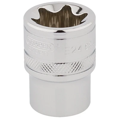 General description This is a high-quality 1/2 inch square drive TX-STAR socket E24, designed for professional use. It is manufactured from durable chrome vanadium steel, which is hardened and tempered for strength and longevity. The socket features a polished finish for smooth handling and ease of use. Technical specifications Drive Size: 1/2 inch Type: TX-STAR (Torx) E24 Material: Chrome vanadium steel Finish: Polished Compatibility and accessories Compatible with tools that accept 1/2 inch square drive sockets Suitable for use with Torx E24 fasteners Installation Attach the socket securely to a compatible ratchet or drive tool Usage Use to tighten or loosen Torx E24 fasteners Ideal for professional and DIY home improvement tasks involving Torx fasteners Other information Expert Quality, sockets manufactured from chrome vanadium steel, that's hardened and tempered with a polished finish Display packed This is a Draper product.
