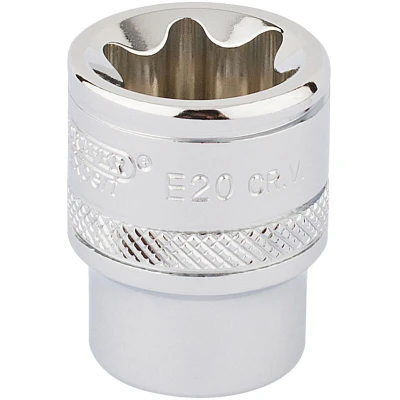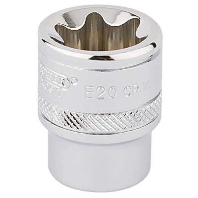 General description This is a 3/8-inch square drive TX-STAR socket designed for use with Torx fixing systems. Manufactured by Draper, it features expert-quality construction suitable for professional and DIY applications. The socket is designed to provide a secure fit and easy engagement with Torx fasteners. Technical specifications Drive size: 3/8 inch Socket type: TX-STAR E20 Material: Chrome vanadium steel Finish: Polished Manufactured to be hardened and tempered for durability Compatibility and accessories Compatible with Draper TX-STAR® fixing systems Designed to work with Torx fasteners of size E20 Can be used with standard 3/8-inch drive tools Installation Insert the socket onto a compatible 3/8-inch drive ratchet or wrench Ensure the socket is properly engaged with the Torx fastener before applying torque Usage Use to tighten or loosen Torx fasteners of size E20 Suitable for professional and DIY tasks involving Torx screws Ensure proper fit to prevent damage to fasteners Other