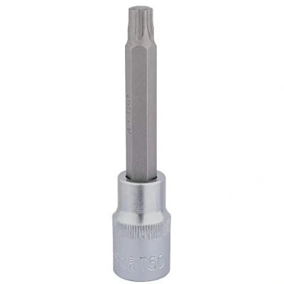 General description This is a 1/2 inch square drive Draper TX-STAR® socket bit designed for professional use. It features a Torx T50X100MM size and is suitable for various fastening applications. The socket is made from hardened and tempered chrome vanadium steel, ensuring durability and strength. It includes a sandblasted S2 silicon steel insert bit for precise engagement and performance. The socket has a knurled ring for improved grip during use. Draper TX-STAR® products are compatible with Torx fixing systems, making them versatile for different tools and tasks.