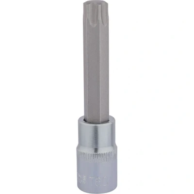 General description This is a high-quality, expert-grade socket designed for professional and DIY use. It features a durable construction from hardened and tempered chrome vanadium steel, ensuring strength and longevity. The socket includes an insert bit made of S2 silicon steel with a sandblasted finish for added durability. It is compatible with Torx fixing systems, making it suitable for various applications. The socket is equipped with a knurled ring for a better grip during use. Technical specifications Material: Hardened and tempered chrome vanadium steel Bit material: S2 silicon steel with sandblasted finish Drive size: 1/2 inch square drive Bit type: TX-STAR (Torx) Bit size: T60 Bit length: 100mm Compatibility and accessories Compatible with 1/2 inch square drive tools Designed for use with TX-STAR (Torx) fixing systems Installation Insert the socket onto a compatible 1/2 inch drive ratchet or wrench Ensure the Torx bit is properly seated in the fastener Usage Use the socket