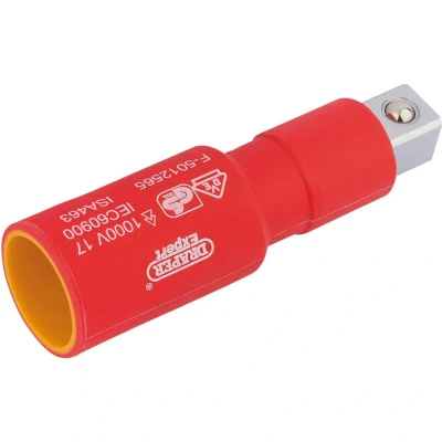 General description Expert Quality Draper 1/2 Sq. Dr. VDE Approved Fully Insulated Extension Bar (75mm) is designed for safe live working, tested to withstand 10,000V, making it suitable for 1000V AC or 1500V DC applications. Technical specifications Length: 75mm Tested voltage: 10,000V Safe for: 1000V AC or 1500V DC live working