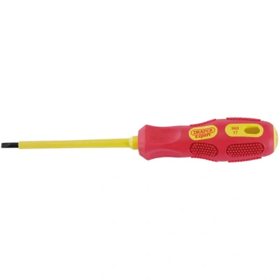 Draper VDE Approved Fully Insulated Plain Slot Screwdriver, 4.0 x 100mm (Display Packed)