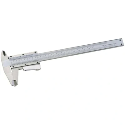 General description This vernier caliper is a high-quality measuring tool made from hardened stainless steel, ensuring durability and precision. It allows for accurate measurements in various applications, including internal, external, depth, and step measurements. The caliper features a satin chrome finish with raised edges and a thumb lock for secure readings. It comes in a protective plastic storage case for easy handling and safekeeping. Technical specifications Measurement range: 0 - 150mm (6 inches) Measurement accuracy: 0.02mm or 1/1000 inch Material: Hardened stainless steel Finish: Satin chrome plated Measurement types: Internal, external, depth, and step Compatibility and accessories Compatible with various DIY, woodworking, metalworking, and engineering projects Includes a plastic storage case for protection and portability Installation No installation required; ready to use out of the box. Usage Open the caliper jaws and place them around the object to be measured Slide