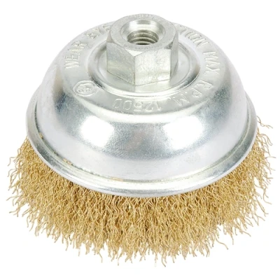 Manufactured from 0.3mm hardened brassed steel wire. Designed for use with angle grinders. The unique rounded edges of the cup prevent the wires breaking whilst in use and thereby prolong the life of the brush and enhance performance. Display packed.
