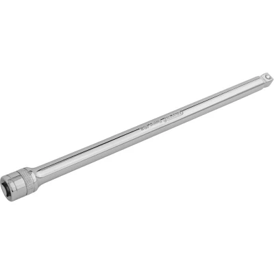 General description This 3/8-inch square drive wobble extension bar is designed to extend the reach of your socket wrench while allowing for angled access. Made from hardened and tempered chrome vanadium steel, it offers durability and strength. The polished chrome finish provides corrosion resistance and a professional appearance. The extension features a knurled ring for a secure grip and a machined wobble end that allows the socket to be driven at up to 15° to the vertical, making it easier to work in tight or awkward spaces. A spring-loaded ball bearing ensures a secure fit for the socket during use. Technical specifications Length: 250mm Material: Chrome vanadium steel Finish: Polished chrome Wobble angle: Up to 15° Drive size: 3/8 inch Manufactured according to DIN3122 and ISO3315 standards Compatibility and accessories Compatible with 3/8 inch drive sockets and ratchets Suitable for use with various socket sets and extension tools Installation Attach the extension bar to your