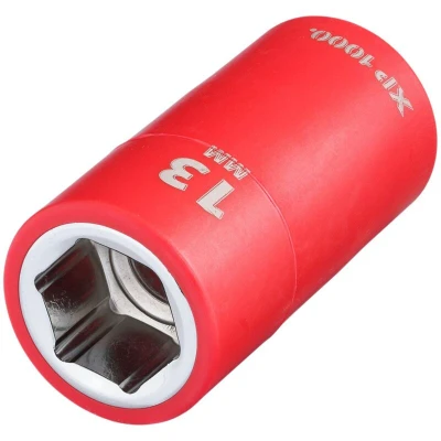 Draper Expert XP1000 quality. These 6-point VDE sockets are forged from hardened chrome vanadium steel. Suitable for hybrid and electric vehicle servicing and maintenance. Tested to 10,000V for safe working on live circuits of 1,000V AC and 1,500V DC. Draper Expert XP1000® quality 6-point socket forged from chrome vanadium steel Tested to 10,000V for safe working on live circuits of 1,000V AC and 1,500V DC Ideal for hybrid and EV servicing and maintenance, plus electricians and other trades working on live circuits Lifetime warranty Insulation : VDE Insulation testing: Tested to 10,000V suitable for working on live circuits of 1,000V AC and 1,500V DC