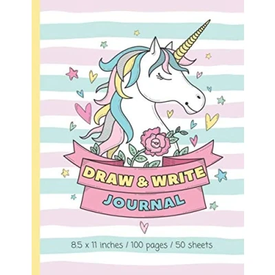 Draw and Write Journal: Unicorns 100 Half Page Lined Paper with Drawing Space Primary Notebook for Kids K 3