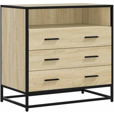 ManoManoGeneral description This stylish drawer cabinet in Sonoma oak adds an elegant charm to your interior. With a well-designed structure, it features a stable and long-lasting frame made from engineered wood and metal, providing exceptional durability and resistance to corrosion. The cabinet includes three large drawers, offering ample storage space for your daily essentials while keeping them organized and easily accessible. The sturdy top surface is perfect for displaying decorative items such as potted plants and framed photos. Technical specifications Colour: Sonoma oak Material: Engineered wood, metal Dimensions: 70 x 41 x 70 cm (W x D x H) Maximum weight capacity (total): 70 kg Assembly required: Yes Other information Warning: To prevent tipping, this product must be used with the provided wall attachment device.