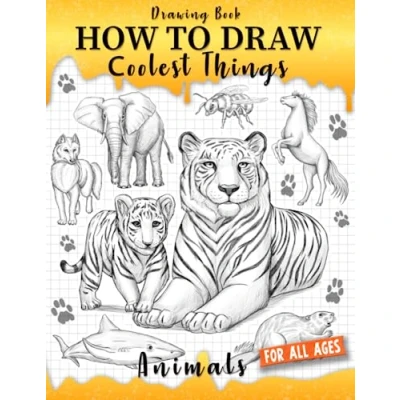 Drawing Book How to Draw Coolest Things Animals: Simple and Fun Guide that Teaches Kids Step by Step. (Includes Animals Such as Dogs, Cats, Lions, Elephants, Dolphins, More)