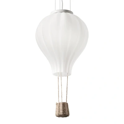 Ideal for a playful touch in any room of the home the Dream Big White Decorative Air Balloon Pendant is made with a fabric balloon shade for beautiful illumination. This whimsical fixture even has a basket for a realistic look. This would be a wonderful light for a living space or a child's room.