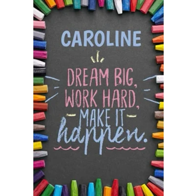 Dream Big Workhard Make it Happen Caroline: Personalised Motivational Journal Notebook for Girls Named Caroline. (Custom Name Journal, Blank ... Pages Colorful Chalk Cover Inspirational Quo