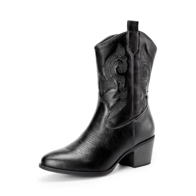 Timeless Western Charm: The retro-inspired design of these Western-style boots for women features a refined upper adorned with intricate embroidery, effortlessly blending classic Western aesthetics with modern style. These embroidered cowgirl boots are a must-have essential to your boot collection. Comfort Meets Confidence: Set on a sturdy 2.2-inch Cuban heel these women’s Western boots offer a flattering lift, elongating your legs while ensuring you’re comfortable throughout the day. Made To Last: The TPR outsole provides reliable traction and durability, making these women’s cowboy boots dependable for any occasion. Enhanced Comfort Insole: The insole is cushioned with 4mm latex foam, ensures a soft, supportive step every time you wear these mid-calf cowgirl boots. Versatile Year-Round Style: Casual outings, commutes, date nights, festivals, or even rodeo events, these fashion Western boots are a must-have for any fashion-forward wardrobe.