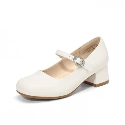 DREAM PAIRS Girls Dress Shoes Mary Jane Low Heels Flower Wedding Party Pump Prom Footwear for Little/Big Kids,Size 10 Little Kid,Ivory,SKPU26003K