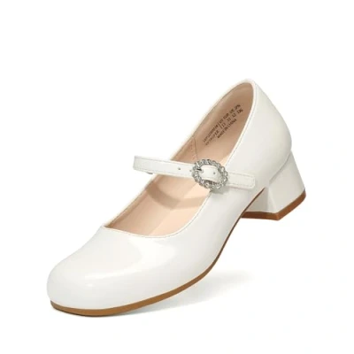 DREAM PAIRS Girls Dress Shoes Mary Jane Low Heels Flower Wedding Party Pump Prom Footwear for Little/Big Kids,Size 3 Big Kid,White,SKPU26003K