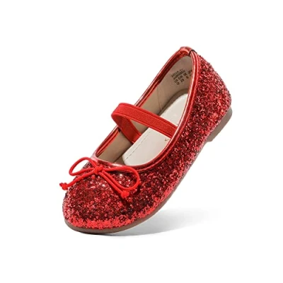 Lovely & Cute: Designed with a glittering upper that ensures their every step is filled with shimmer and elegance. Adorned with an elegant bowknot on the upper, these flats complete your little princesses’ ensembles for any occasion. Enhanced Comfort: Fitted with a soft latex insole, these girls’ ballet flats keep feet supported and comfortable when wearing them all day. Convenient Style: The slip-on silhouette with an elastic band makes it easy for your girls to put on and take off while keeping their feet in place when walking. Flexible TPR Outsole: A patterned TPR outsole with a 0.2-inch heel ensures your girls can walk with stability and confidence. Multiple Occasions: Paired with school uniforms or dresses, these girls' flats shoes will ly fit any occasion, such as being a flower girl, attending a wedding, party, dancing, or other daily wear. Friendly Tip: Please ONLY refer to the UK size chart in the listing image and shoes box.The US size on the shoe sole is just a standard mark, please disregard the number.