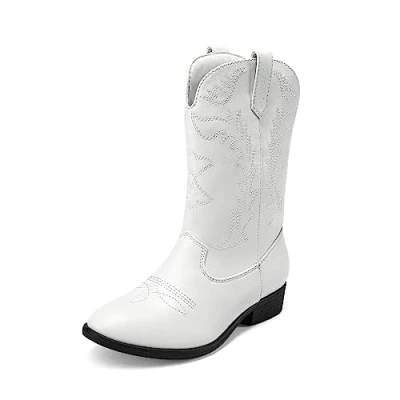 DREAM PAIRS Kids Cowgirl Cowboy Western Boots Girls Mid Calf Riding Shoes Little Kid/Big Kid,Size 12 Kid,White,SDBO214K