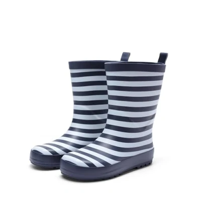 Waterproof Fun: Made with a durable rubber upper, these Wellington boots for kids keep little feet dry through puddles, splashes and drizzles, perfect for spontaneous rain walks. Stripe Style: Featuring a vibrant striped pattern, these wellies for kids bring a splash of fashion to wet weather. A cheerful design kids love, and photo-ready for proud parents. Easy-on Magic: Designed with a handy back pull tab, these toddler wellies make getting dressed simple, even for wiggly little ones learning to do it themselves. All-Day Comfort: Lined with soft cloth and cushioned with breathable mesh foam, these baby wellies offer a snug and comfy fit that keeps up with playtime adventures. All-Grip Sole: With a textured rubber outsole offering excellent traction on wet surfaces, these waterproof wellies help to keep little explorers steady and safe on every step.