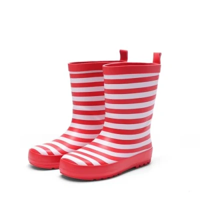 DREAM PAIRS Kids Wellies Waterproof with Stripe Design, Easy On Pull Tab, Soft Lined, Non Slip Sole for Toddler Boys Girls,Size 7 Little Kid,Red/White,KKUMRB2504