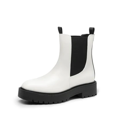 DREAM PAIRS Women's Chelsea Ankle Boots Fashion Low Heel Lug Sole Platform Fall Booties Shoes,Size 3.5,White Pu,SDAB2412W